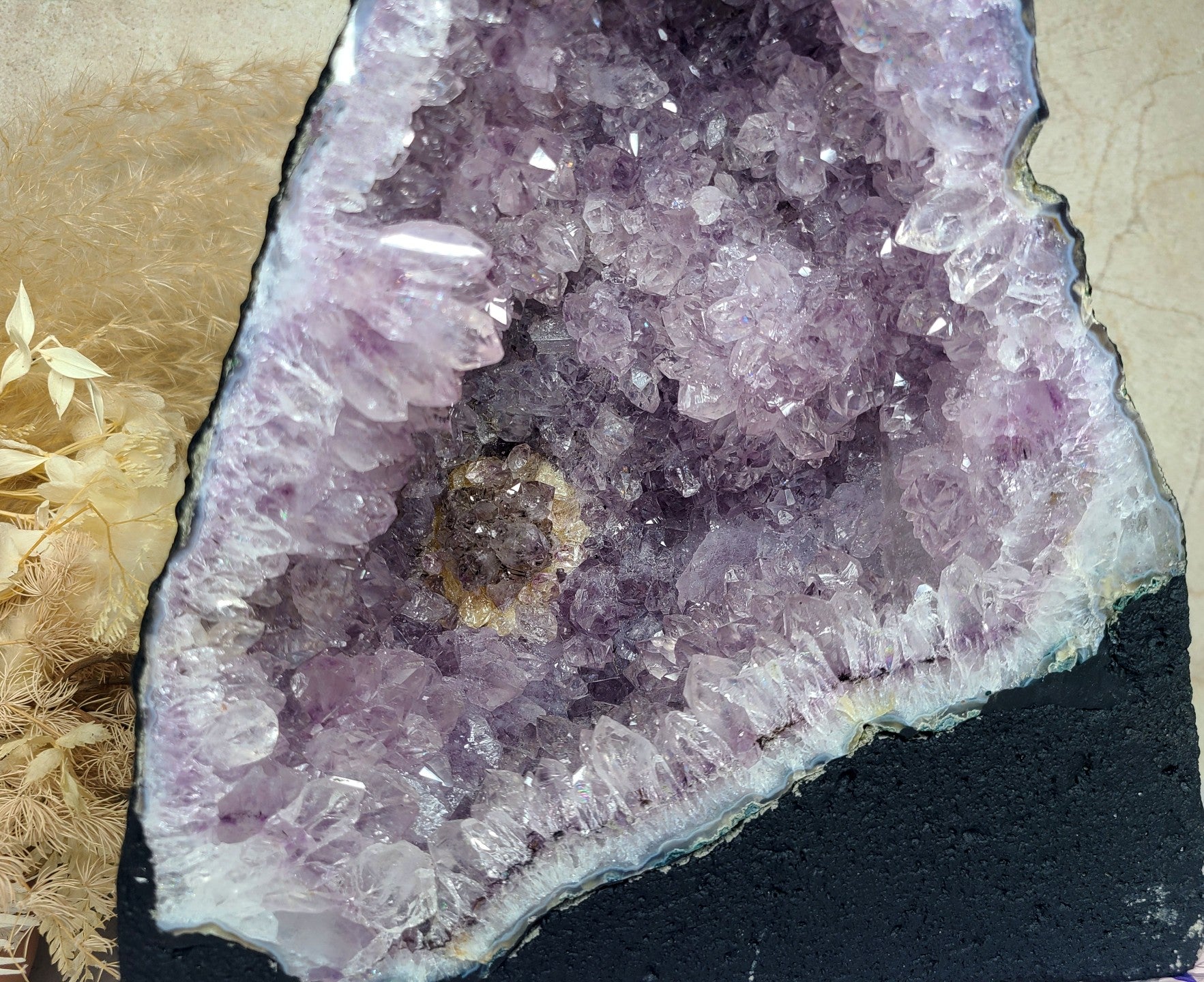 Amethyst is all about good energy. It's known for calming you down when you're stressed or anxious, and it can even help you get in touch with your intuition. Plus, it's like a mini energy cleanser for your home, getting rid of any bad vibes and keeping things positive. Basically, this Brazilian Amethyst Cathedral is more than just decoration – it's a way to create a peaceful and happy home.