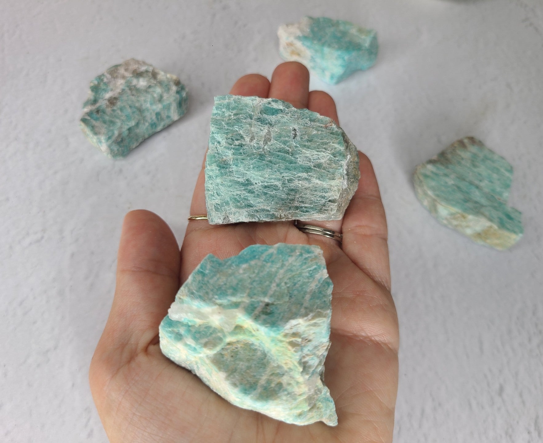 Discover the raw, natural beauty of these Amazonite rough stones, straight from the heart of Brazil. Each piece is a unique, unpolished gem, showcasing the stone's natural textures and captivating shades of turquoise and green. These rough stones embody the raw energy of the earth, offering a tangible connection to nature.
