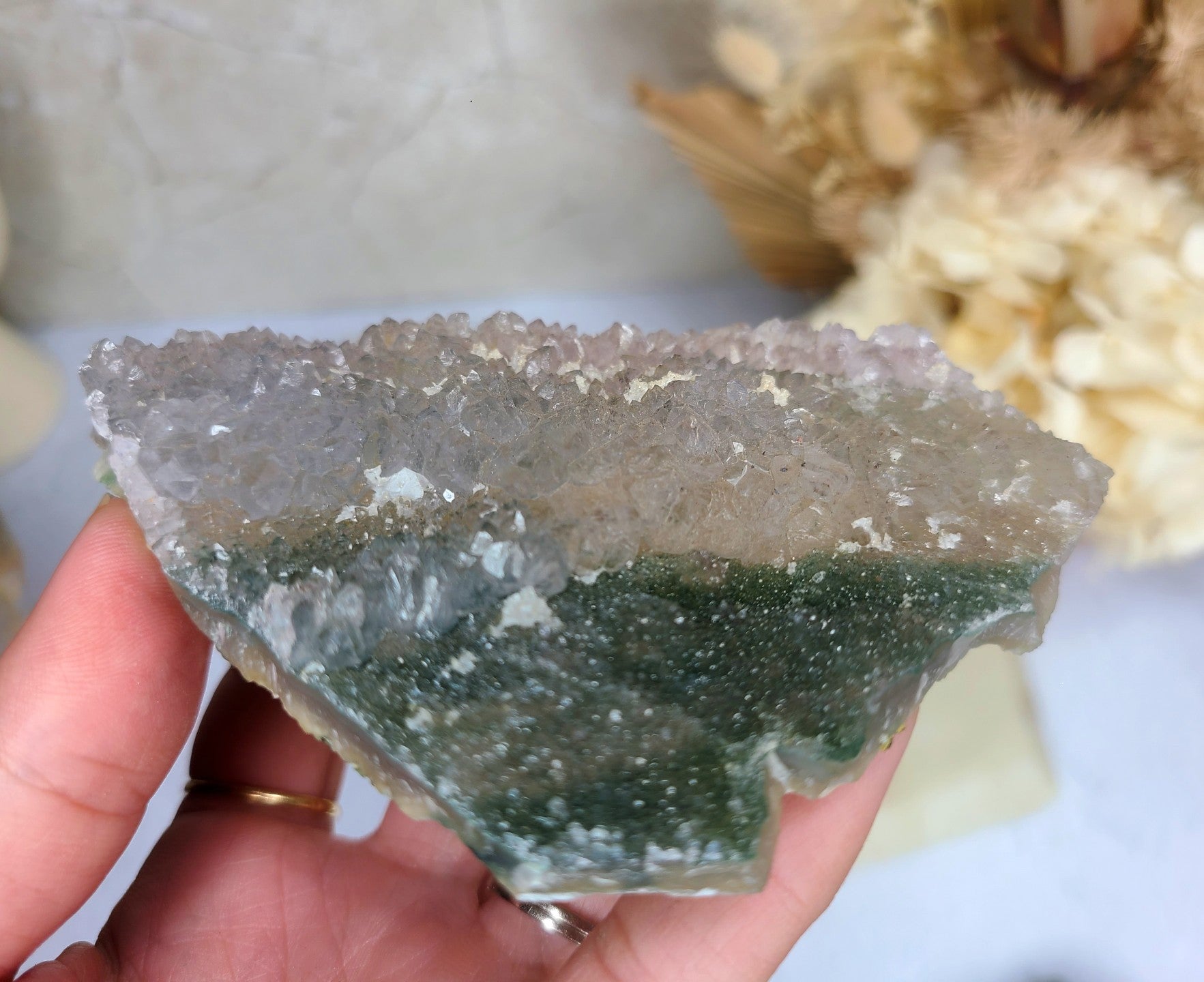 Amethyst is known for its ability to enhance intuition, promote spiritual awareness, and connect you to higher realms. Combined with Zeolite, which amplifies energy, this specimen can deepen your spiritual practices and connection to your higher self.