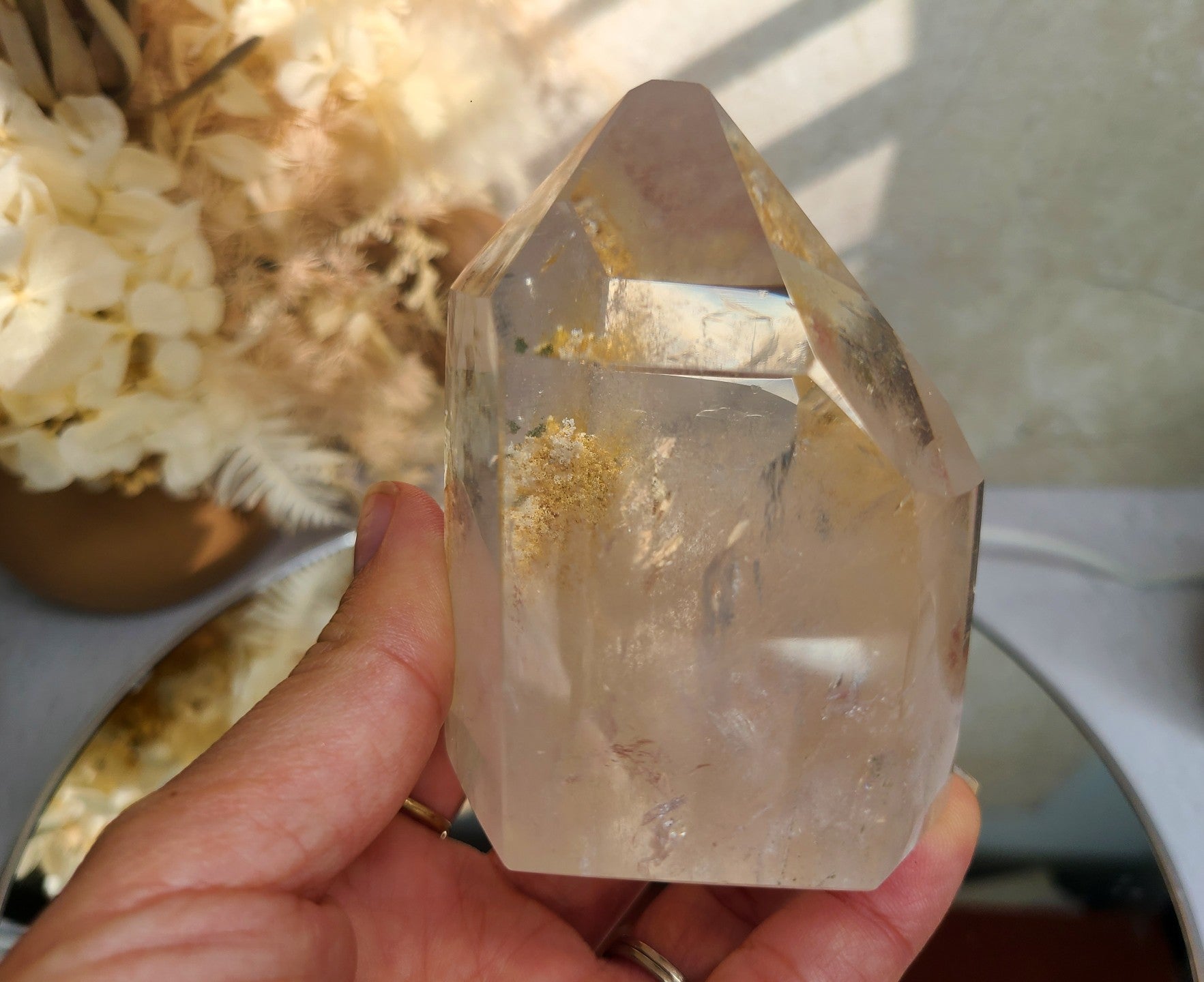 Garden Quartz, adorned with intricate inclusions resembling a verdant landscape, blends the amplifying power of quartz with the Earth's vitality. Its unique inclusions, resembling lush gardens, create mesmerizing patterns, inviting contemplation of an internal world. This crystal is celebrated for enhancing clarity, emotional balance, and connecting individuals with the nurturing energies of nature, making it a truly distinctive and spiritually enriching stone.