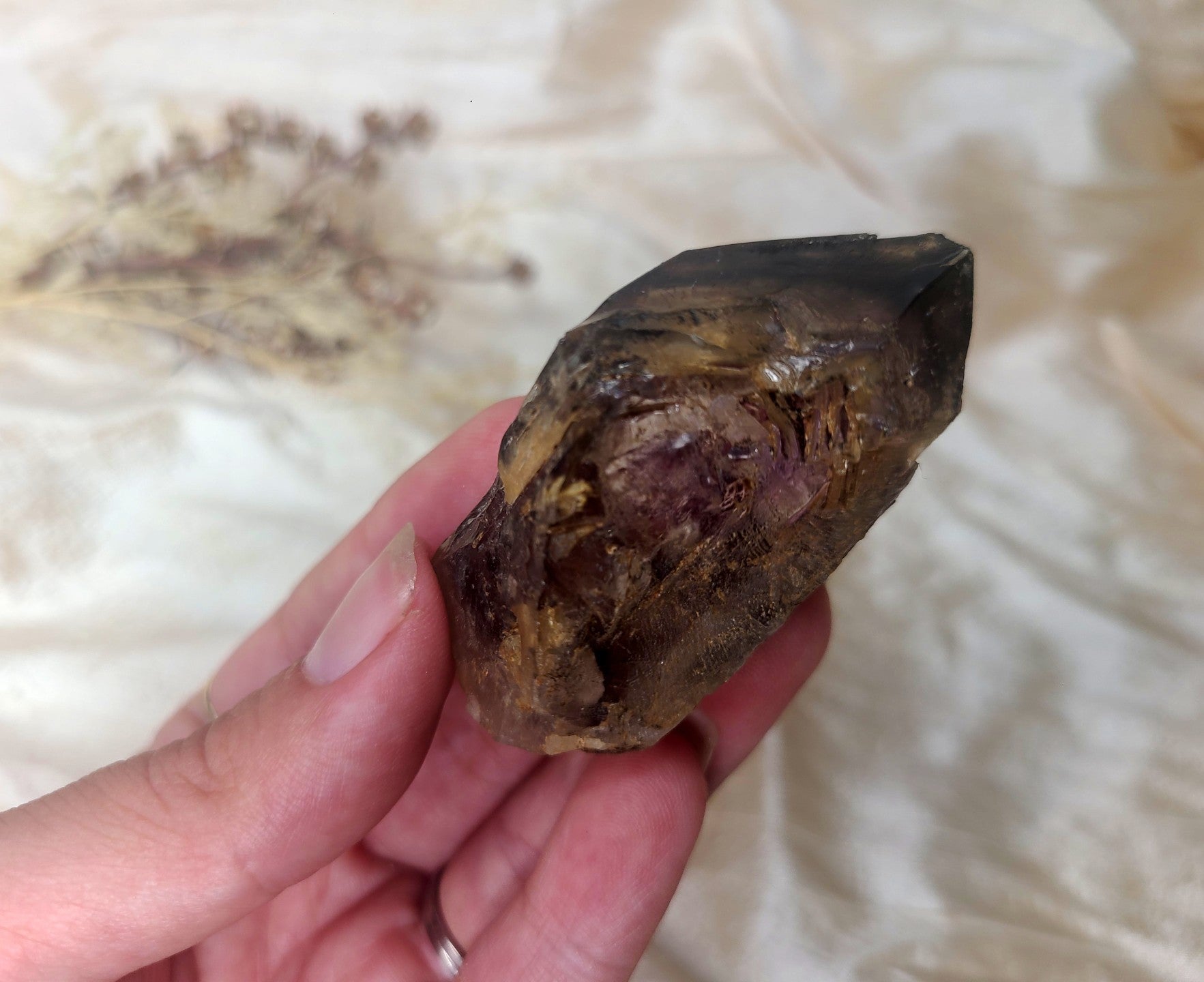 Found only in the Brandberg Mountains of Namibia, these crystals are legendary. A Brandberg is a unique mix of Amethyst, Clear, and Smoky Quartz, often containing "enhydros" (ancient water bubbles). It is the premier stone for spiritual "resetting," helping to bring you back to your purest blueprint and assisting in the release of old karmic baggage.