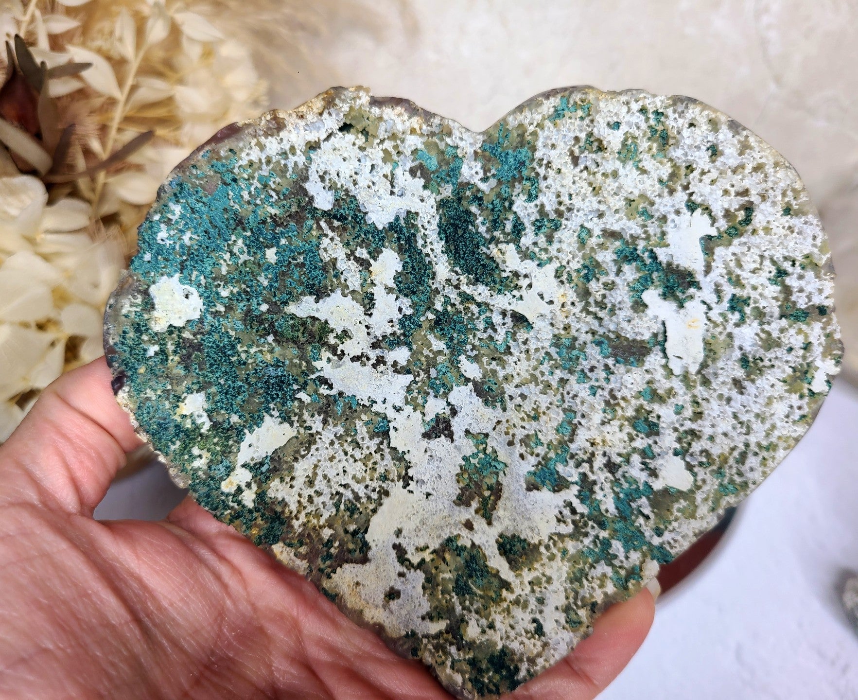 The “flowers” within this amethyst heart are said to open the mind to higher consciousness and intuitive insights. Amethyst is closely linked to the Third Eye and Crown chakras, serving as a powerful tool for enhancing spiritual awareness. It can help you access deeper wisdom, clarify your dreams, and strengthen your connection to your higher self and the divine. This heart serves as a beautiful reminder to trust your inner voice and follow your spiritual path with clarity and conviction.