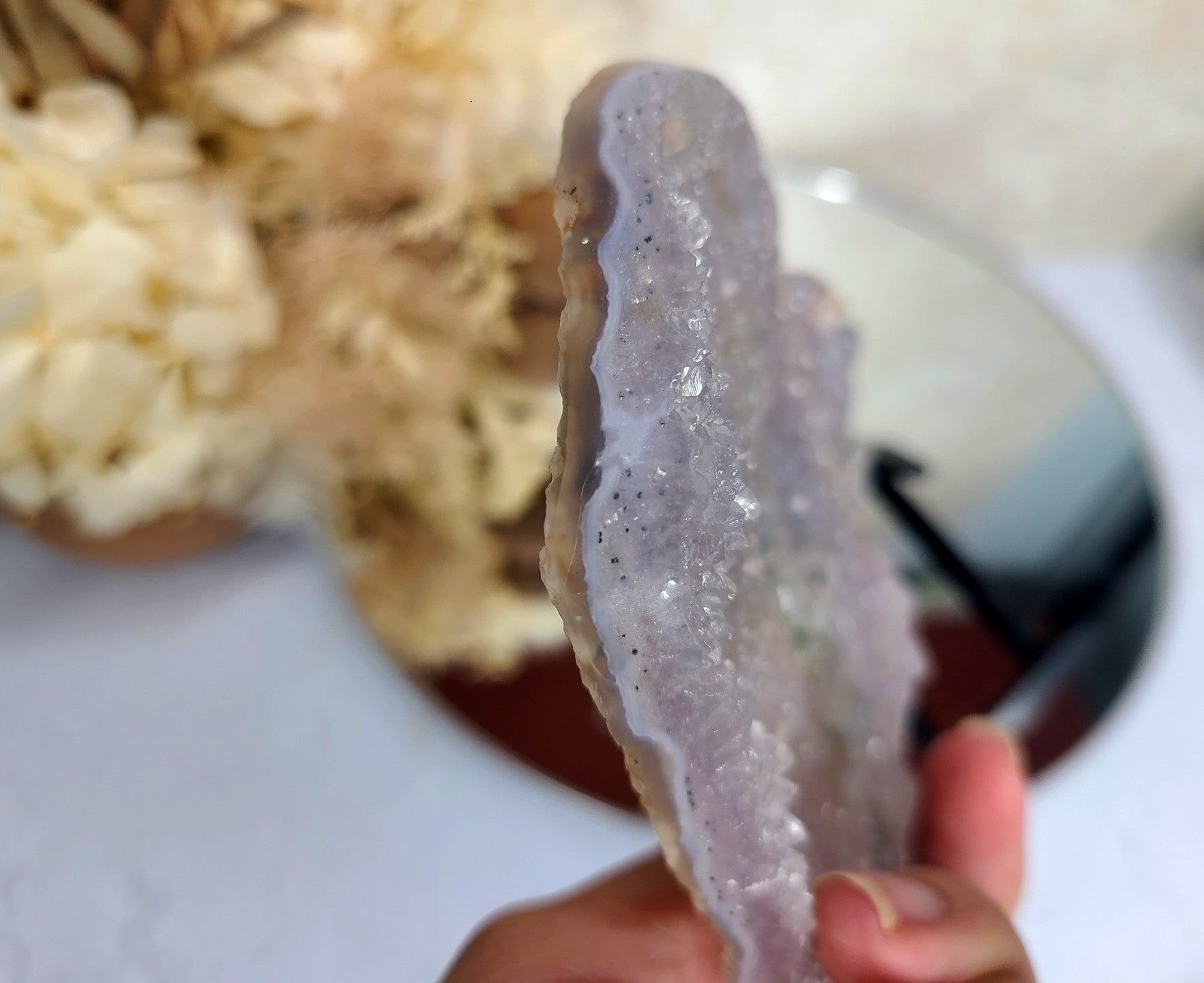 This unique formation of Amethyst is believed to have an exceptional ability to purify energy—both within your body and in your surroundings. It works to cleanse the aura of stagnant or negative energy, encouraging a balanced flow of life force. The soothing vibrations of this crystal can help stabilize emotions, offering comfort and support during times of grief, loss, or emotional turmoil. It encourages emotional healing and helps you maintain a sense of equilibrium, fostering a more positive and balanced outlook on life.