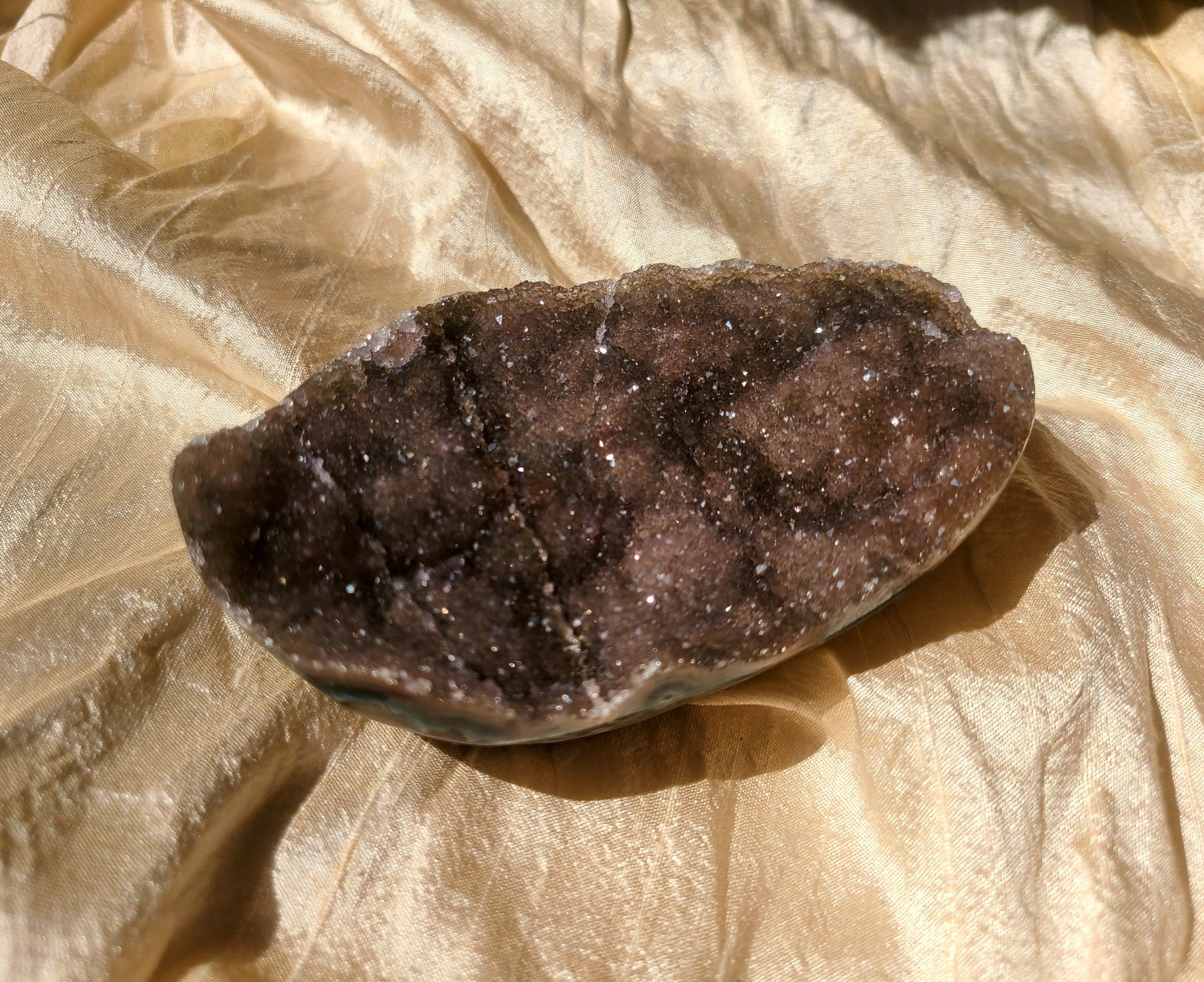 More than just stunning aesthetics, Galaxy Amethyst is believed to cultivate emotional balance, promote inner peace and soothe anxieties with its calming energy. Embrace your journey of self-discovery, unlock your intuition, and nurture self-love with the energy of this beautiful stone. Many believe that Galaxy Amethyst can help ground and stabilise emotions, while also promoting spiritual growth and connection to the divine. Its combination of amethyst's calming energies and the grounding properties of hematite can create a harmonious balance within the body and mind.