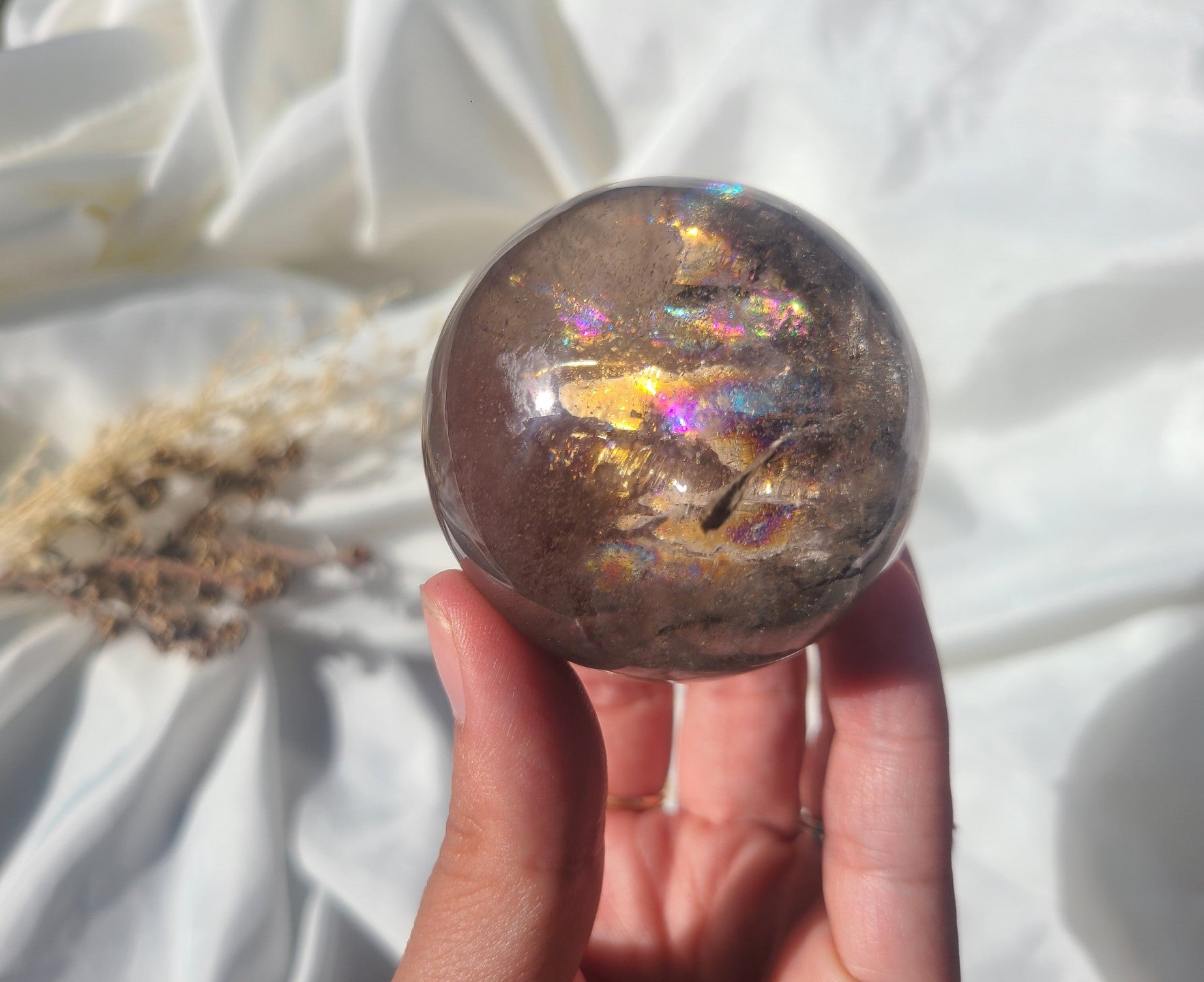 Smoky Quartz Sphere with Rainbows