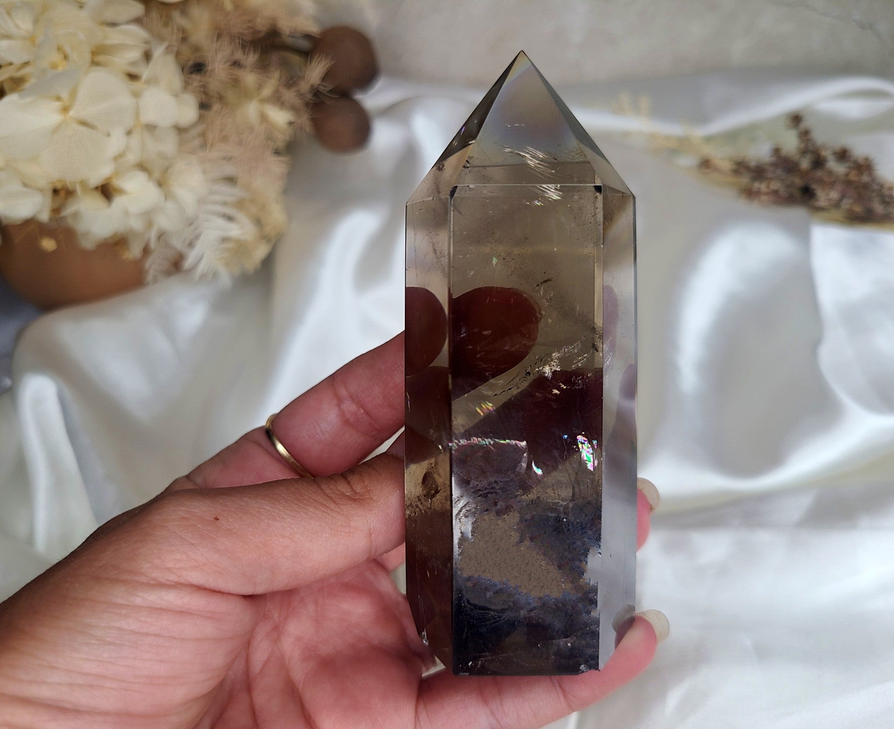Smoky Quartz is the ultimate "anchor." It’s world-renowned for its ability to take negative vibes, stress, and "bad energy" and ground them back into the Earth. It helps you stay calm and collected when things get a bit "chaotic," making sure you keep your feet firmly on the ground. While the smoky colour is grounding, those hidden rainbows are symbols of hope and joy. They serve as a gentle reminder that even in the "grey" or difficult times, there is always light and beauty to be found. It’s a fantastic stone for anyone moving through a tough patch who needs a bit of a "pick-me-up."
